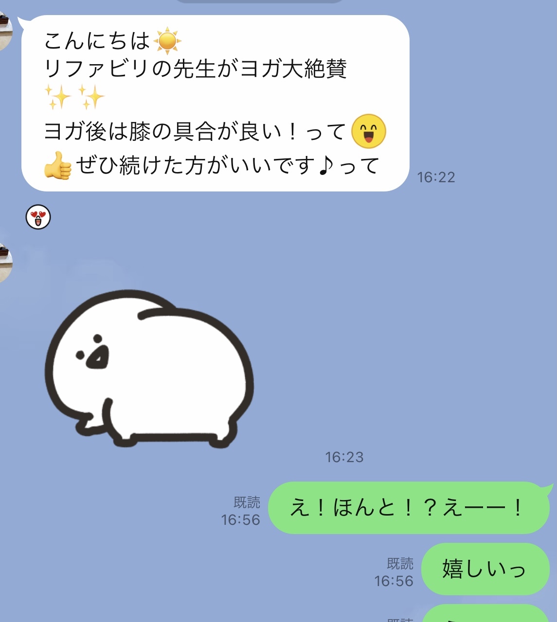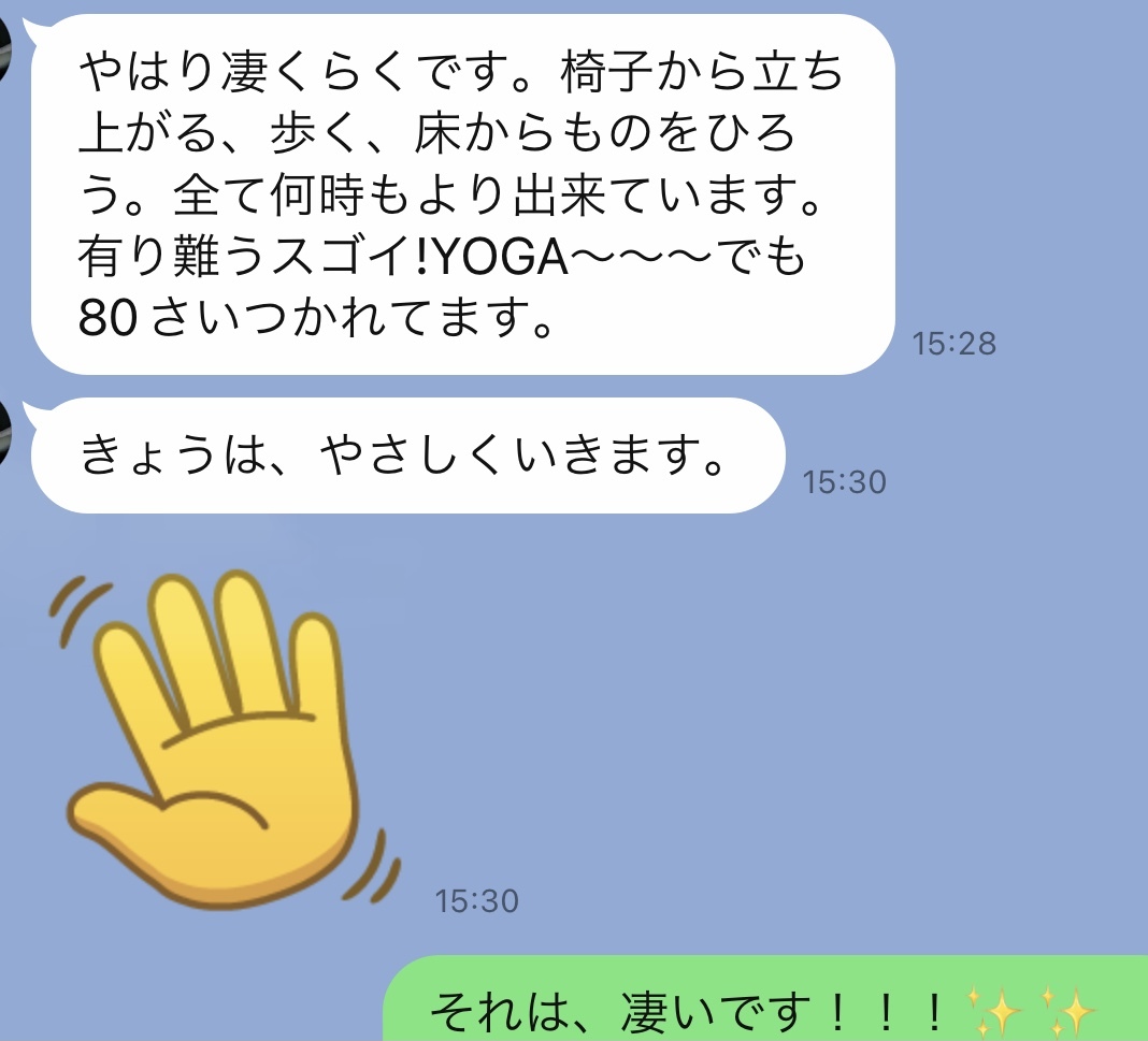 大友先生のヨガを始めたら、初回後15分間、痛みがなくなった